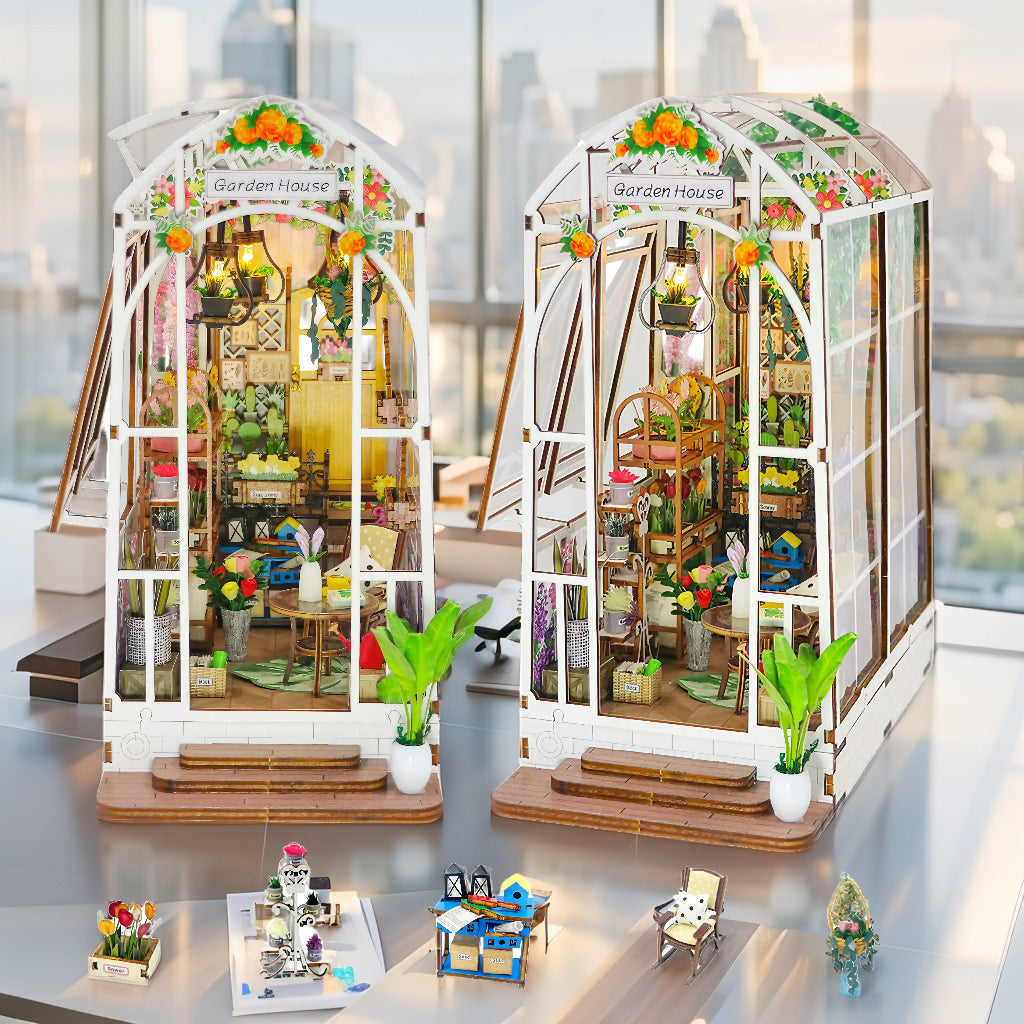 Step into a sun-drenched garden retreat where creativity blooms and every detail tells a story. The Romantic Garden House Book Nook Kit by Flever invites you to build a miniature sanctuary filled with floral accents, cozy furniture, and warm lighting—all enclosed in a clear dust cover that turns your creation into a display-worthy treasure.
