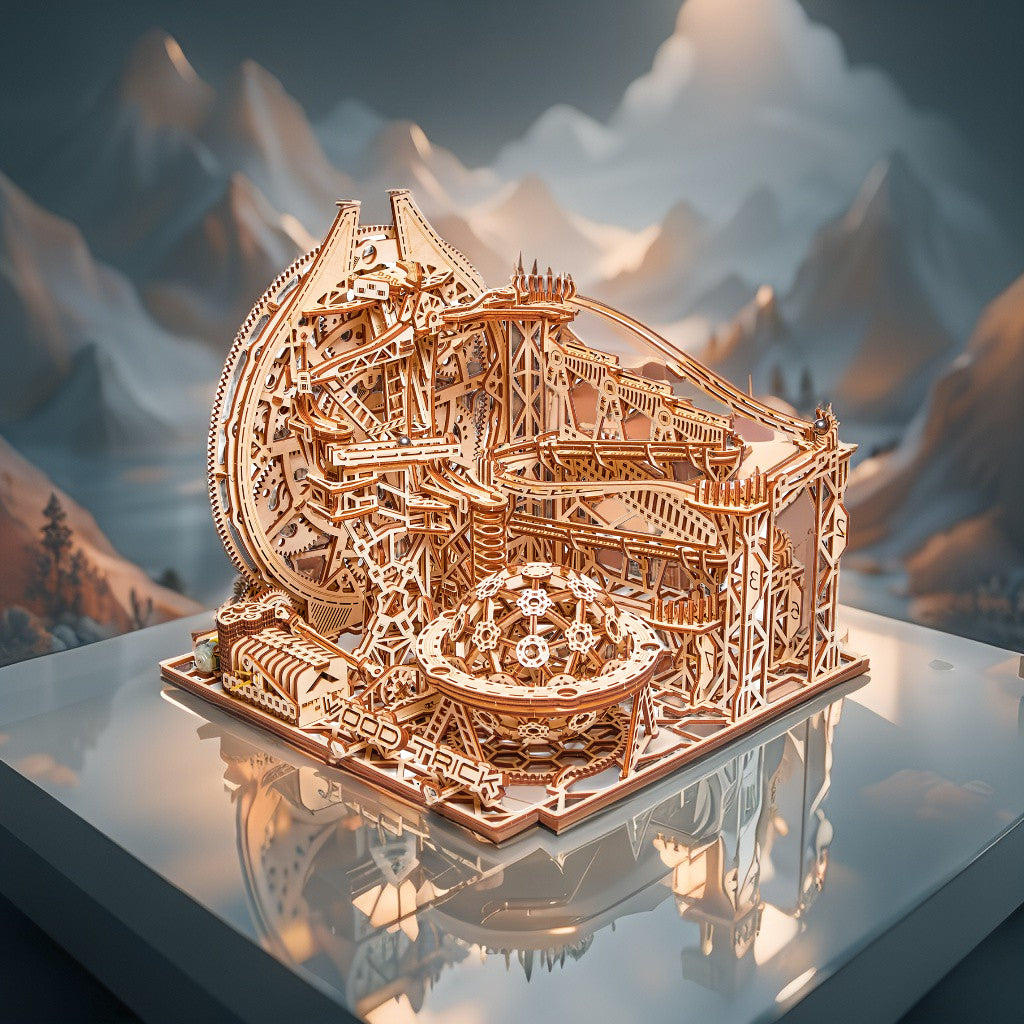 Every gear, ramp, and lift is precision‑cut for a perfect fit — no glue, no toothpicks, just pure mechanical ingenuity. Designed by professional engineers, the Galaxy is more than a model: it’s a kinetic sculpture, a conversation piece, and a masterclass in motion physics.